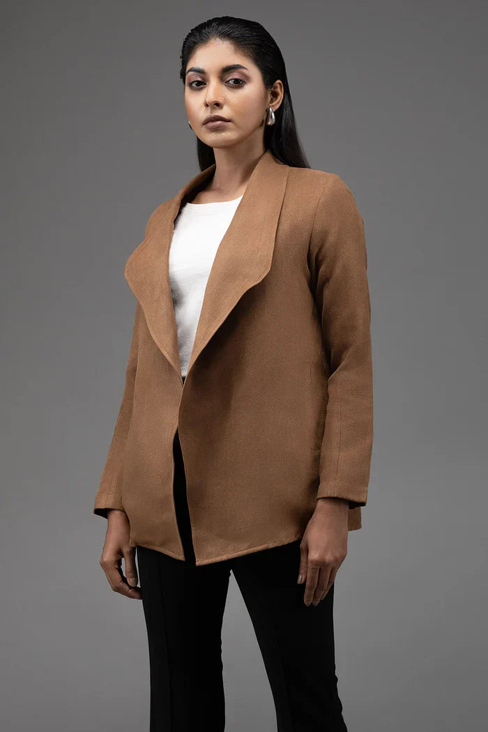 Introducing the asymmetric suede jacket, a striking piece that blends contemporary design with luxurious texture. This jacket features a hip-covered length with a high-low front and back, creating a dynamic silhouette. The wide lapel adds a bold statement, while the full sleeves provide warmth and style. Perfect for adding a touch of sophistication to any outfit, this suede jacket is an essential addition to your wardrobe for a chic and modern look.