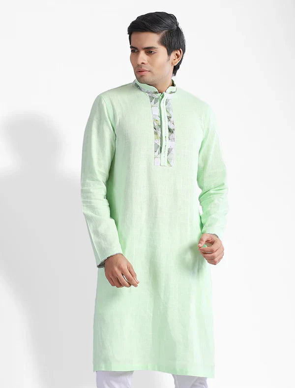 This is an Essential Panjabi that focuses on the simpler things in life. Completely made up of 100% Linen for that stylish finish, this Panjabi has highlighting contrast on the body yoke, collar and placket. This Panjabi is the perfect choice being simple, yet stylish.