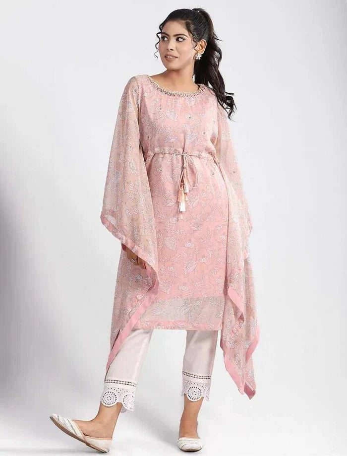 A look of excellence and class can be presented when you wear our kameez. This is a 1 piece regular fit Kaftan with chiffon georgette printed fabric. It has Zardozi work done on the round neck and the upper body dropper. The extra inner is a solid fabric contrast. Wear it to every occasion, and you'll look stunning every time.