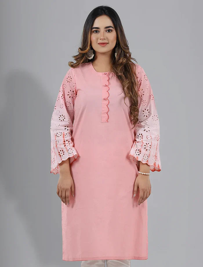 A look of excellence and class can be presented when you wear our ethnic wear. This Kameez comes in one piece and is made of 100% Cotton. This Kameez has chicken-shaded bell sleeves. It also has contrast thread embroidery on the placket and button. There is also contrast piping in the hem. Wear it to every occasion, and you'll look stunning every time.