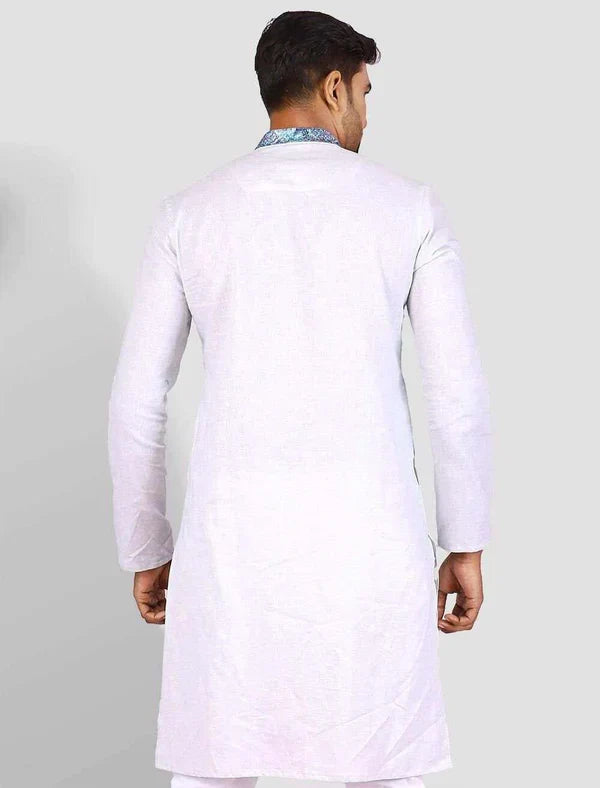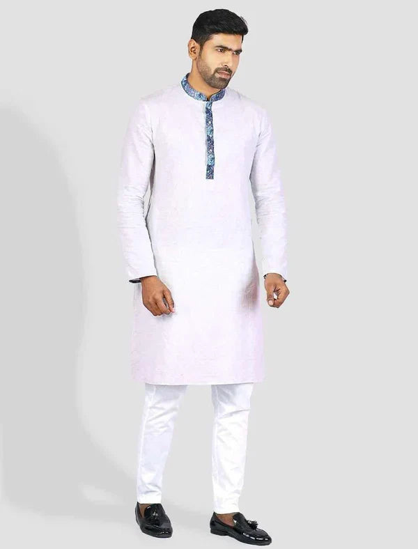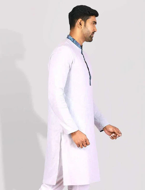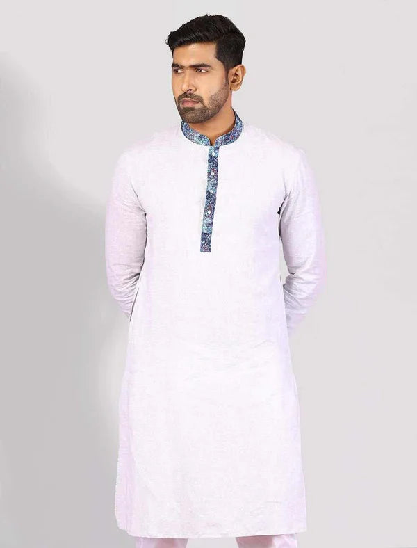 It is an elegantly designed Panjabi that maintains its appealing appearance through simplicity. Completely made up of 100% cotton, this Panjabi has a highlighting contrast on placket and collar as well as a contrast piping on the hem. Choosing this exclusive outfit as the choice for your event, will make you make people wonder about you.